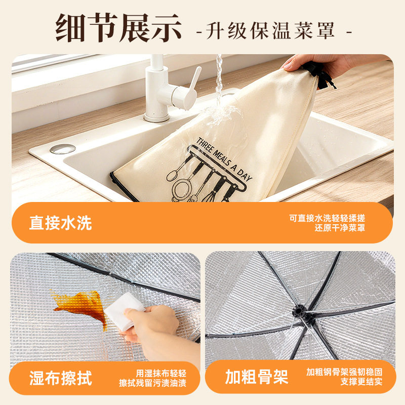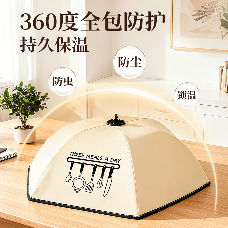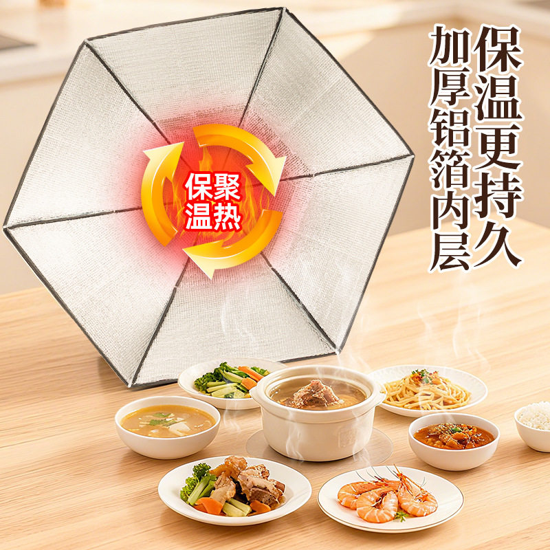 冬季保温菜罩家用可折叠加厚保温餐桌盖菜罩剩饭菜遮尘神器网罩子