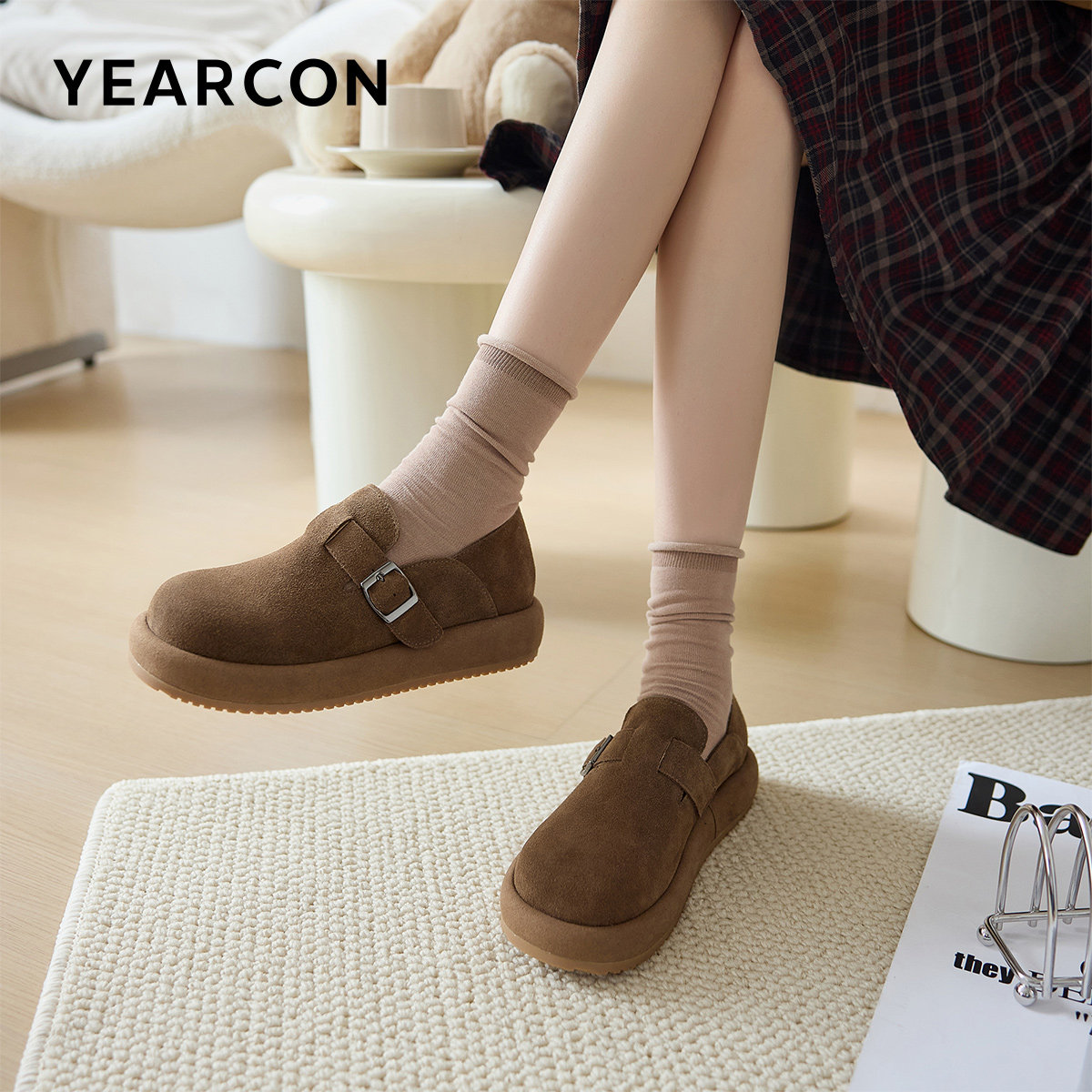 意尔康女鞋春秋季懒人休闲单鞋全包勃肯鞋复古厚底袋鼠鞋一脚蹬