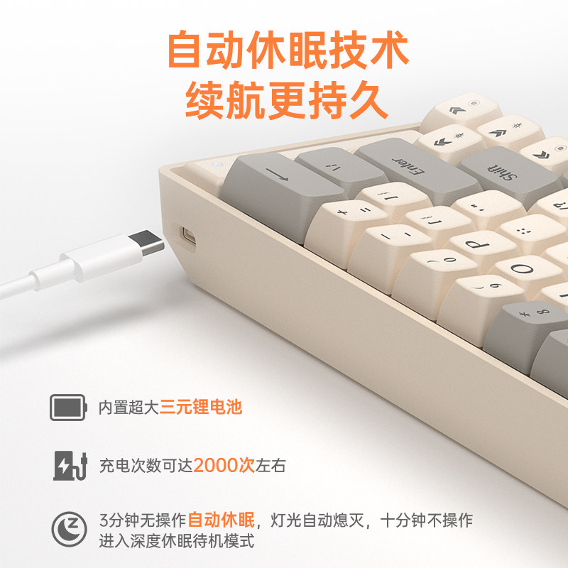 狼途GK65真机械键盘三模有线无线热插拔双系统电脑游戏办公通用