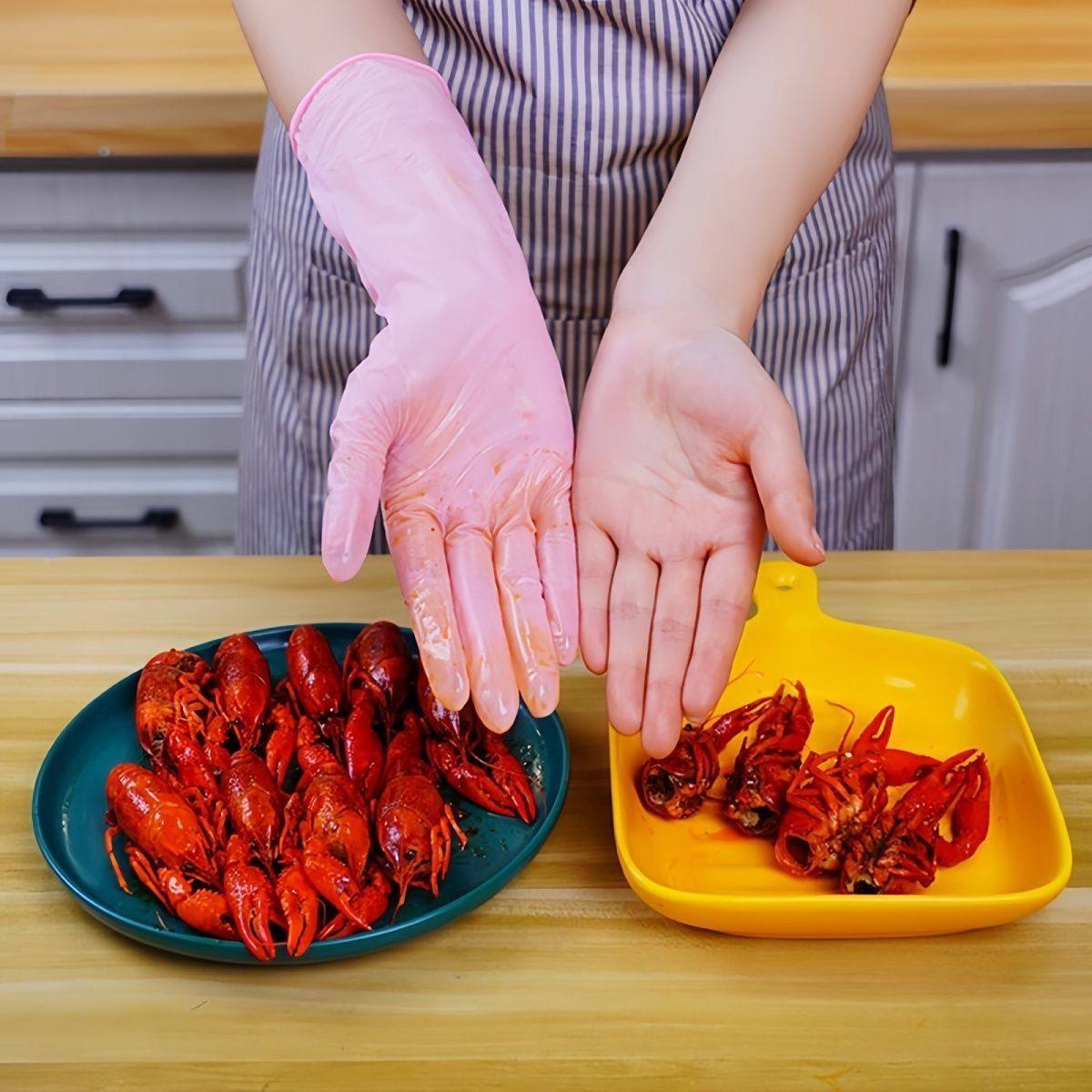 一次性洗碗手套女家务清洁厨房耐用食品级加长丁腈PVC家用薄贴手