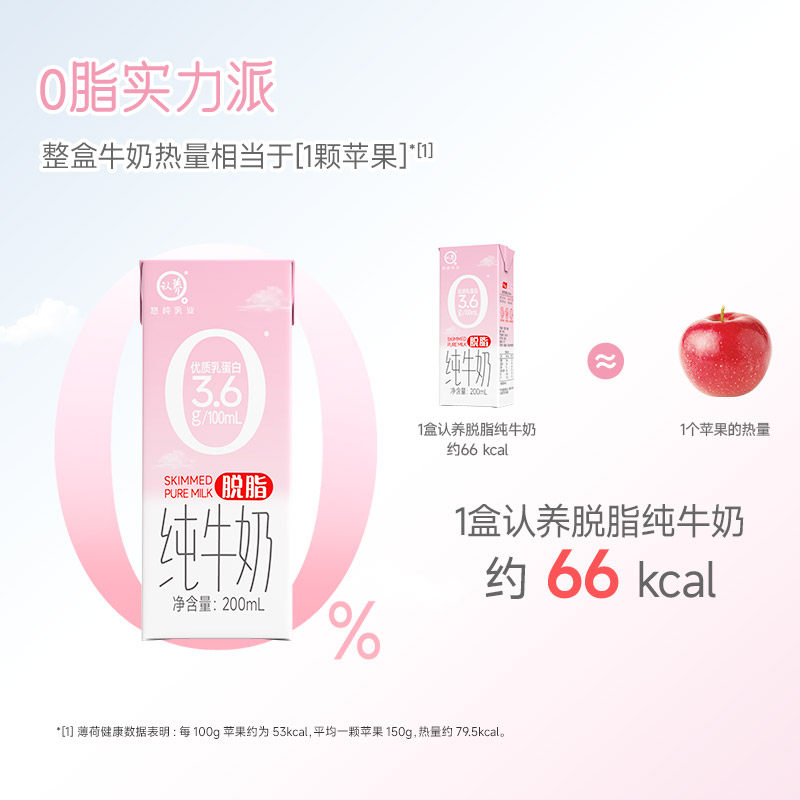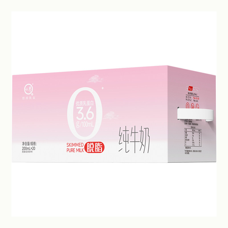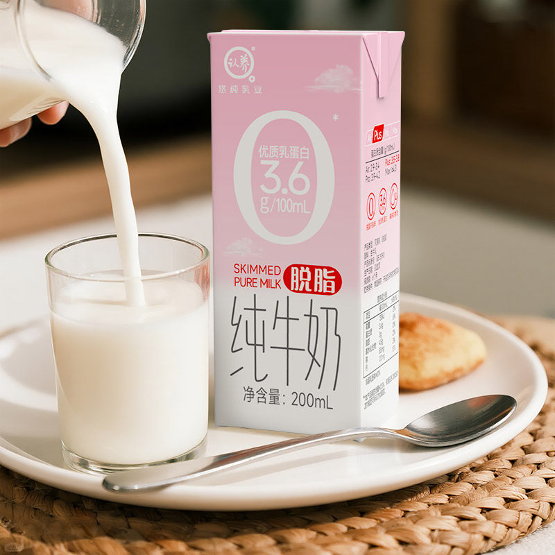 认养脱脂纯牛奶200ml*20盒3.6g蛋白质0脂肪牛奶学生营养早餐高钙