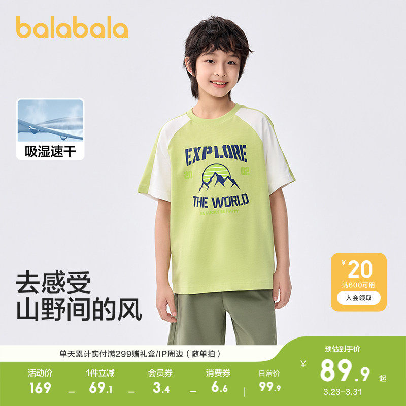 巴拉巴拉儿童短袖套装2026休闲童装夏季男大童两件套薄款速干透气