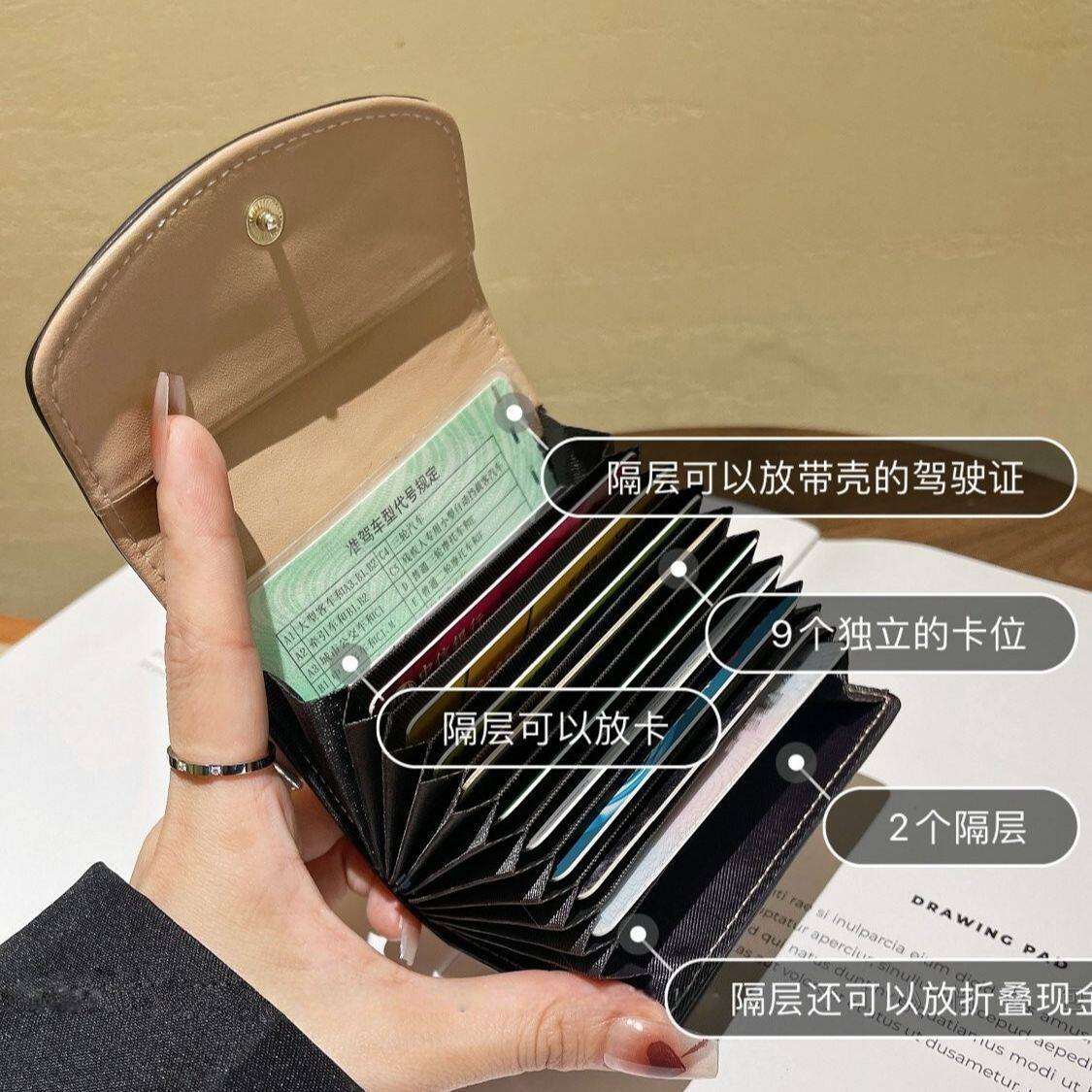 2026新款卡包多卡位小包女士简约迷你卡夹小巧风琴复古证件零钱包