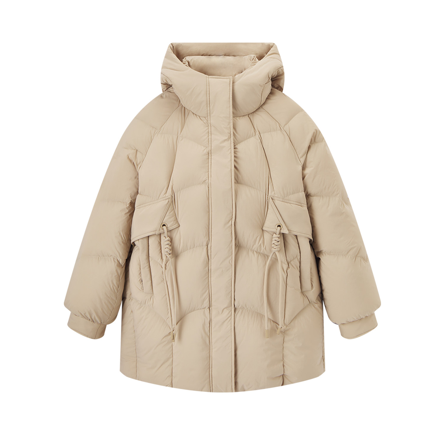爱居兔冬季新款保暖时尚设计感茧型中长款多色羽绒服