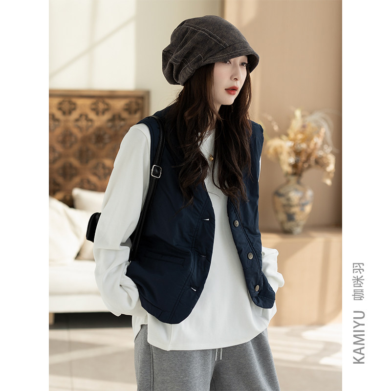 鸭鸭轻薄羽绒服马甲女V领反季基础修身背心休闲蓬松鸭绒马夹外套X
