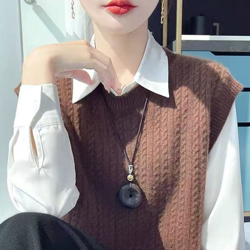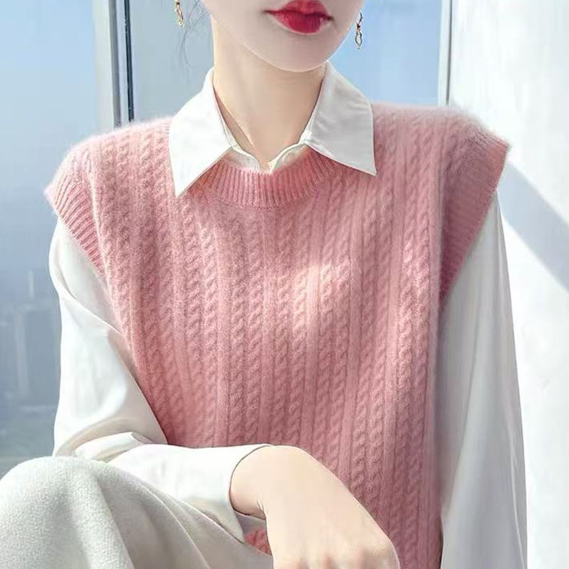 撤柜撤标(A)螺纹坎肩针织马甲背心女春秋外搭洋气大码女装上衣