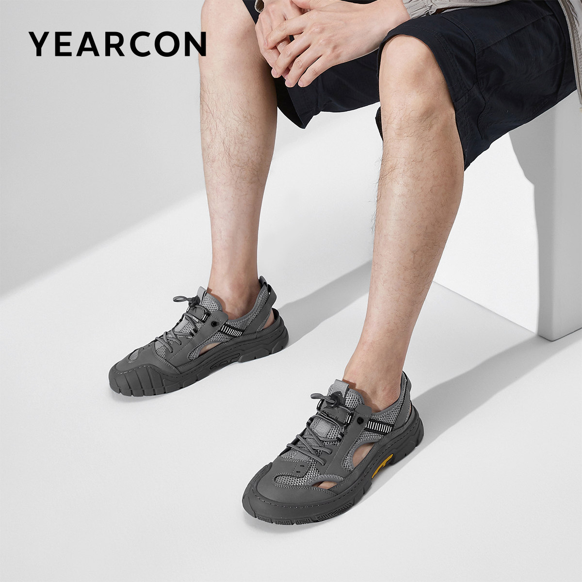 意尔康男鞋夏季男士包头凉鞋外穿户外休闲透气涉水鞋镂空软底开车