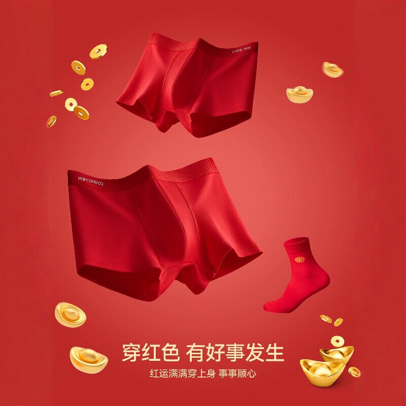 猫人本命年男士内裤纯棉大红色男款短裤2026马年结婚礼物四角裤头