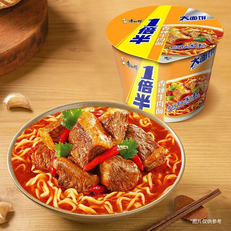 康师傅1倍半方便面桶装整箱批发香辣牛肉面速食泡面藤椒葱香面条