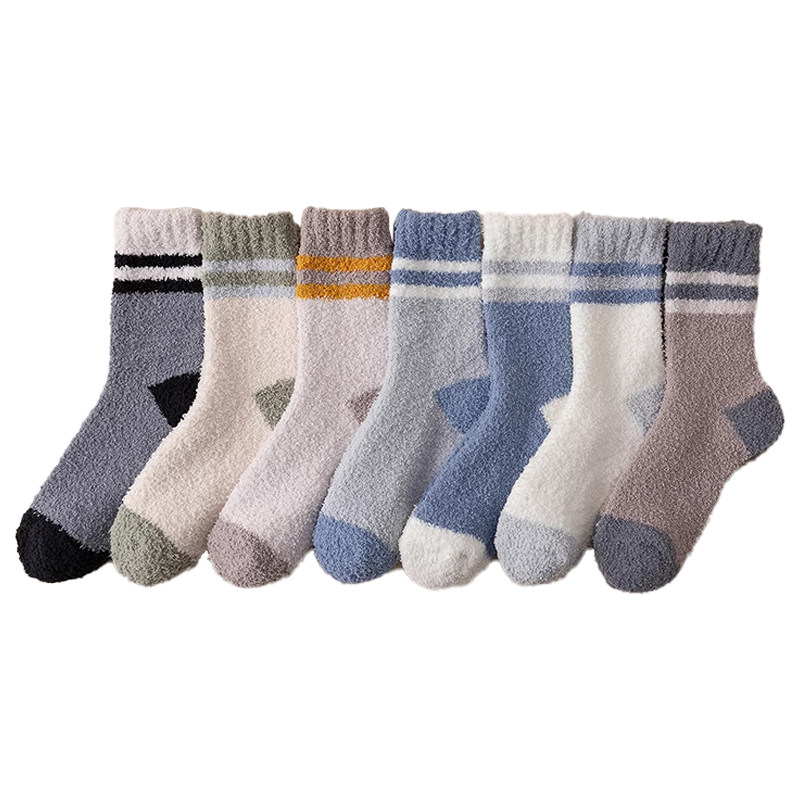 珊瑚绒袜子男秋冬中筒袜加绒加厚地板袜男士撞色保暖居家睡眠长袜
