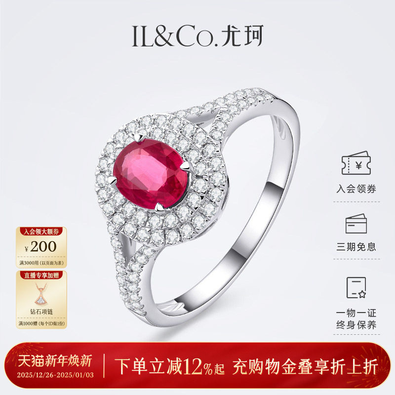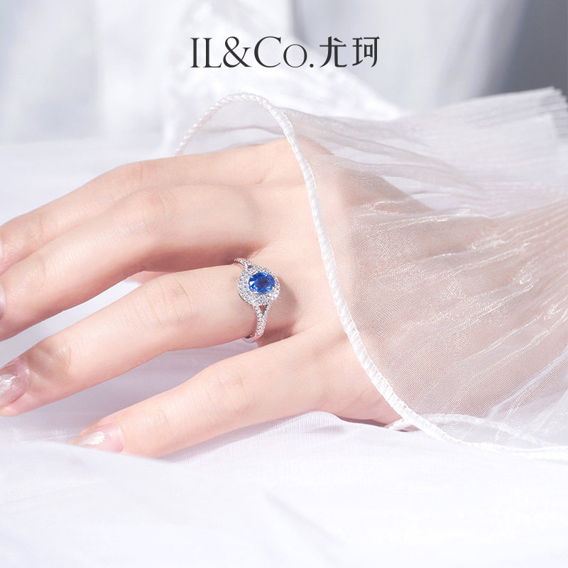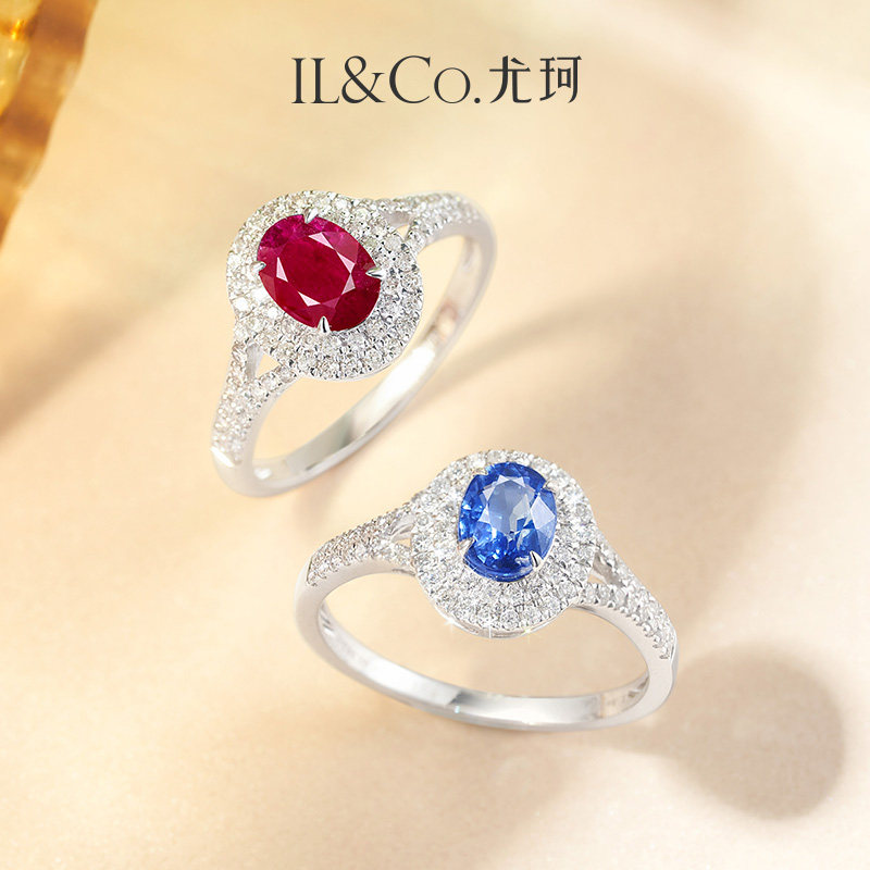 ILCO尤珂「奢魅之花」18K金红宝石女戒蓝宝石镶嵌天然真钻石戒指