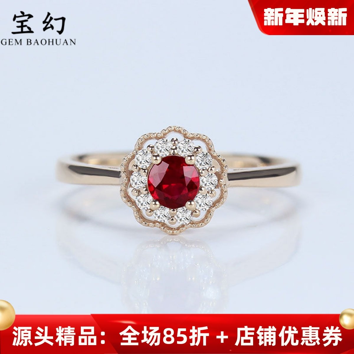 18k玫瑰金正圆形天然鸽血红宝石戒指 黄金白金蕾丝珠边钻石复古女