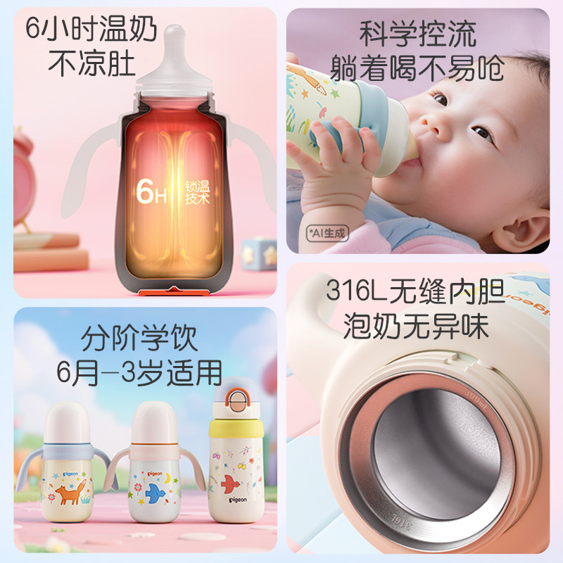 贝亲宝宝保温杯儿童水杯秋冬季保温吸管奶瓶学饮防呛防漏6-18月+