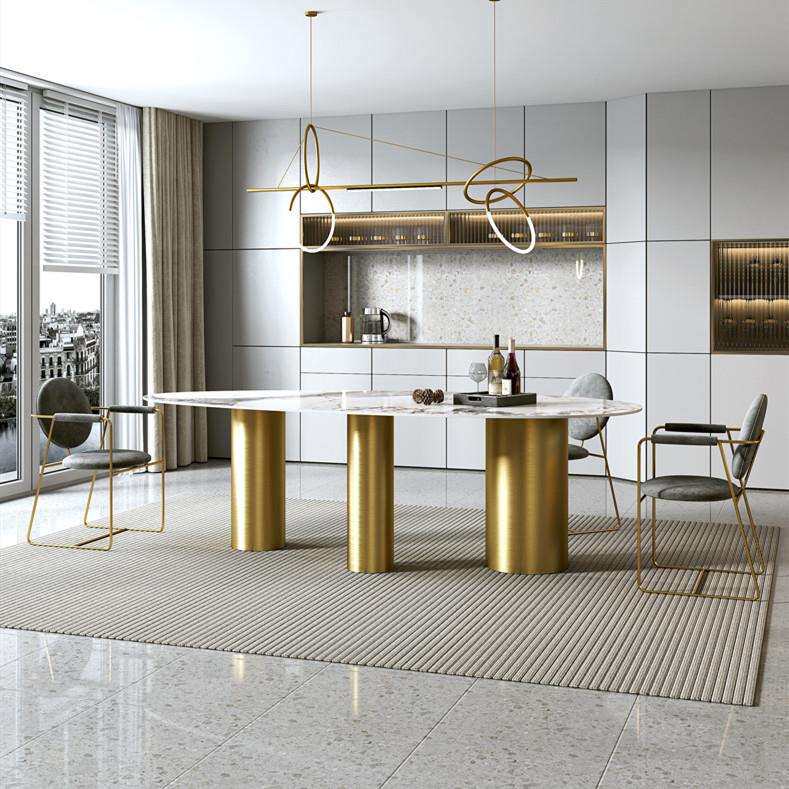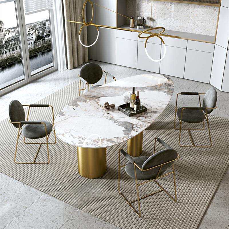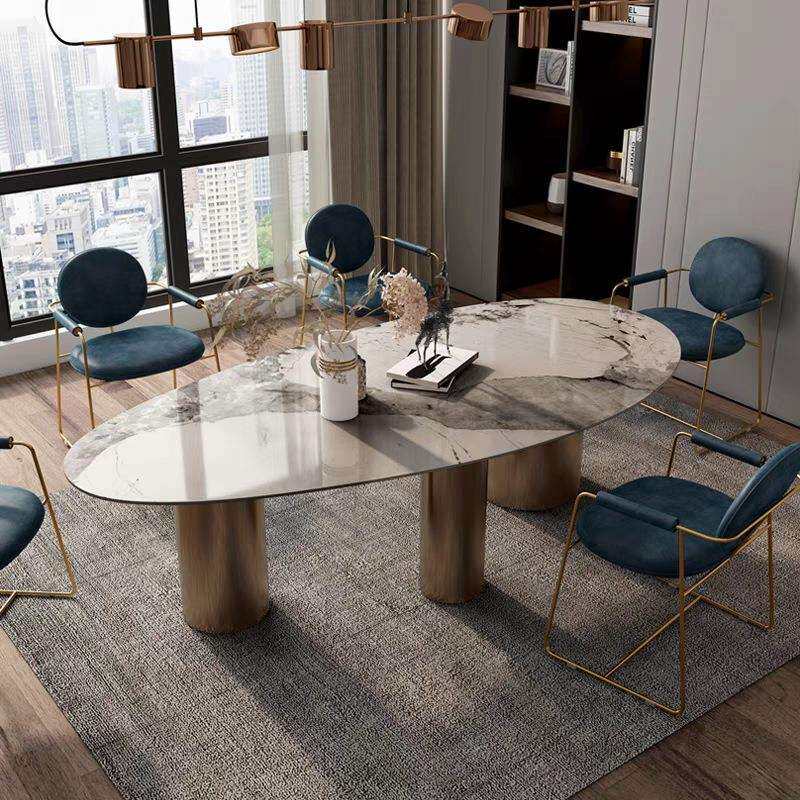 意式岩板餐桌现代简约小户型家用椭圆异形餐桌椅组合饭桌