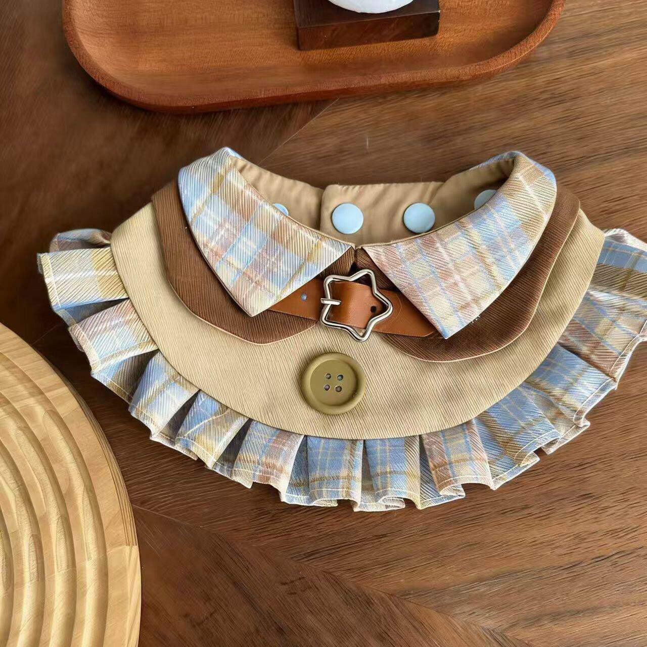 猫咪狗狗三角巾围脖口水巾围巾领带褶子格子手工围兜百搭领结饰品
