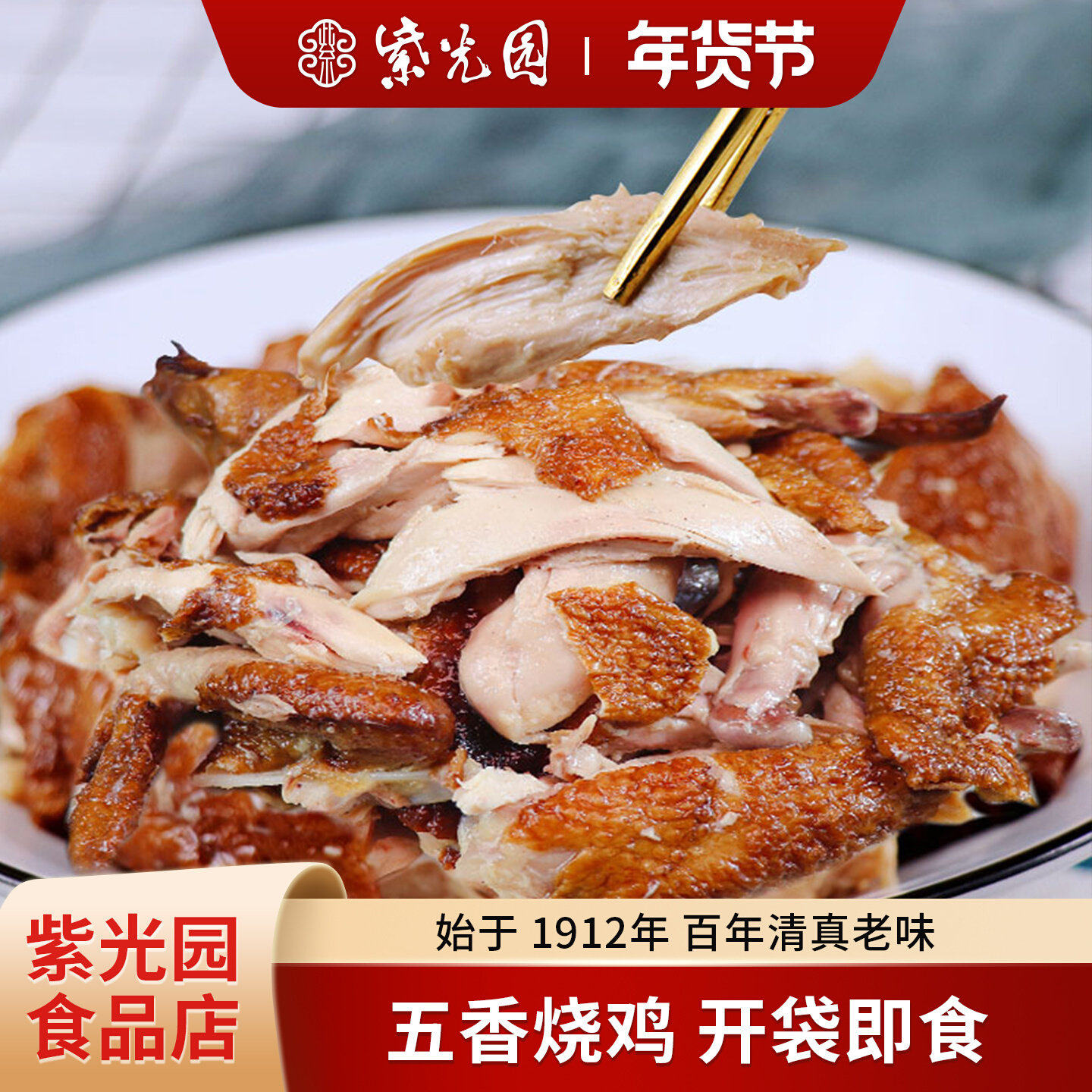 紫光园清真经典五香烧鸡正宗特产手撕鸡整只真空脱骨熟食无添健康