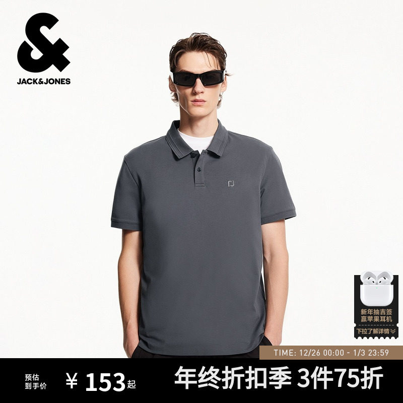 杰克琼斯男装新款式士polo衫秋季商务休闲纯棉翻领T恤高级翻短袖