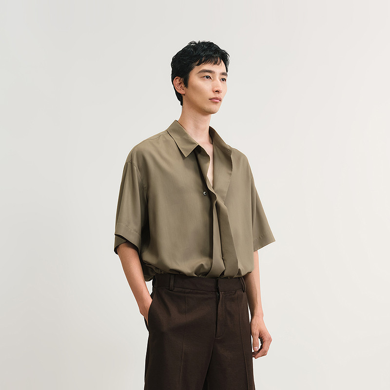 速写男装春夏新款男士衬衫斜门襟短袖衬衫新中式设计优雅休闲轻薄