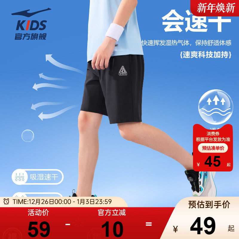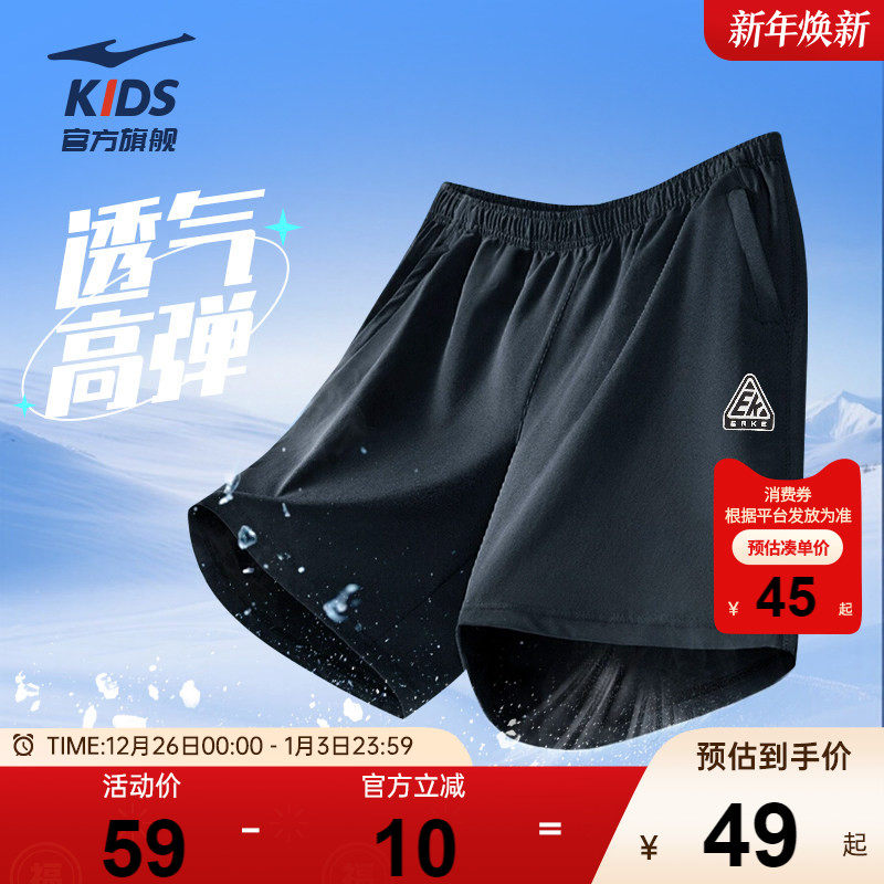 鸿星尔克童装男童运动短裤夏季中大童透气薄款速干裤子儿童五分裤