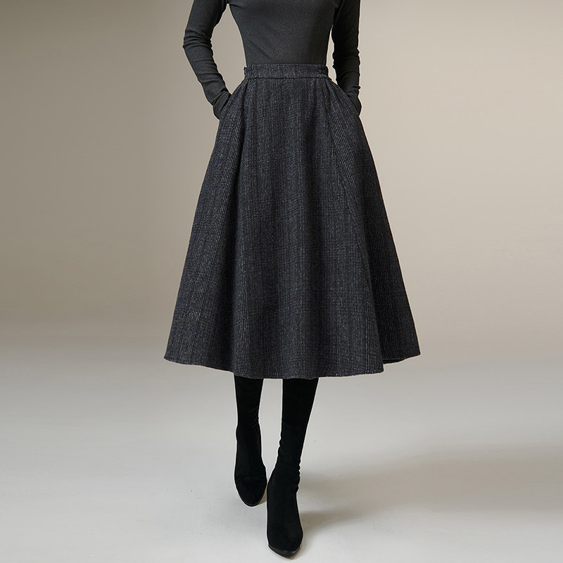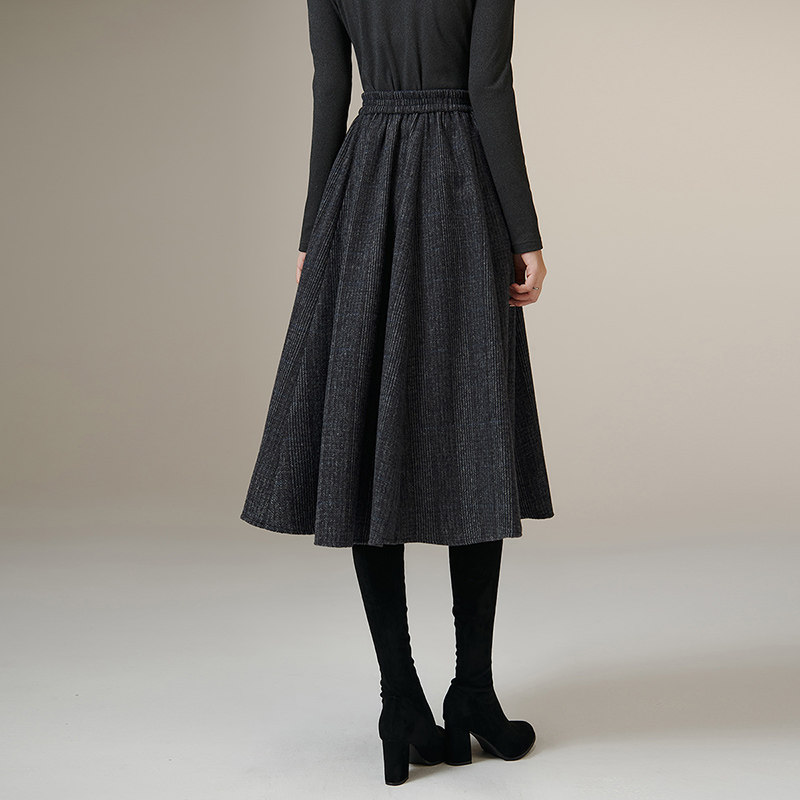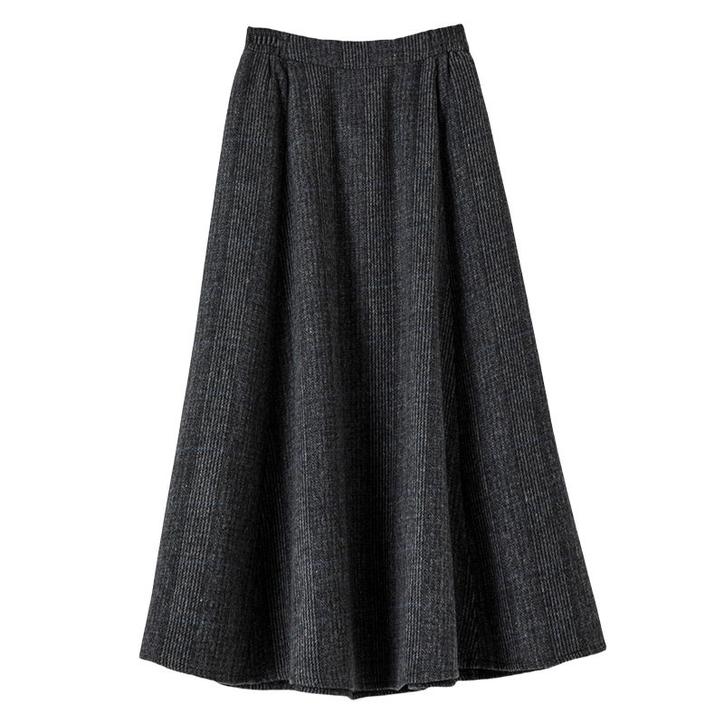 三福格子长裙女2025新款冬季气质流苏摆不规则半身裙子女装509092