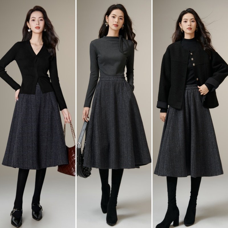 晚白2025年秋冬新款绵羊毛气质裙子高腰百搭时尚小个子a字半身裙