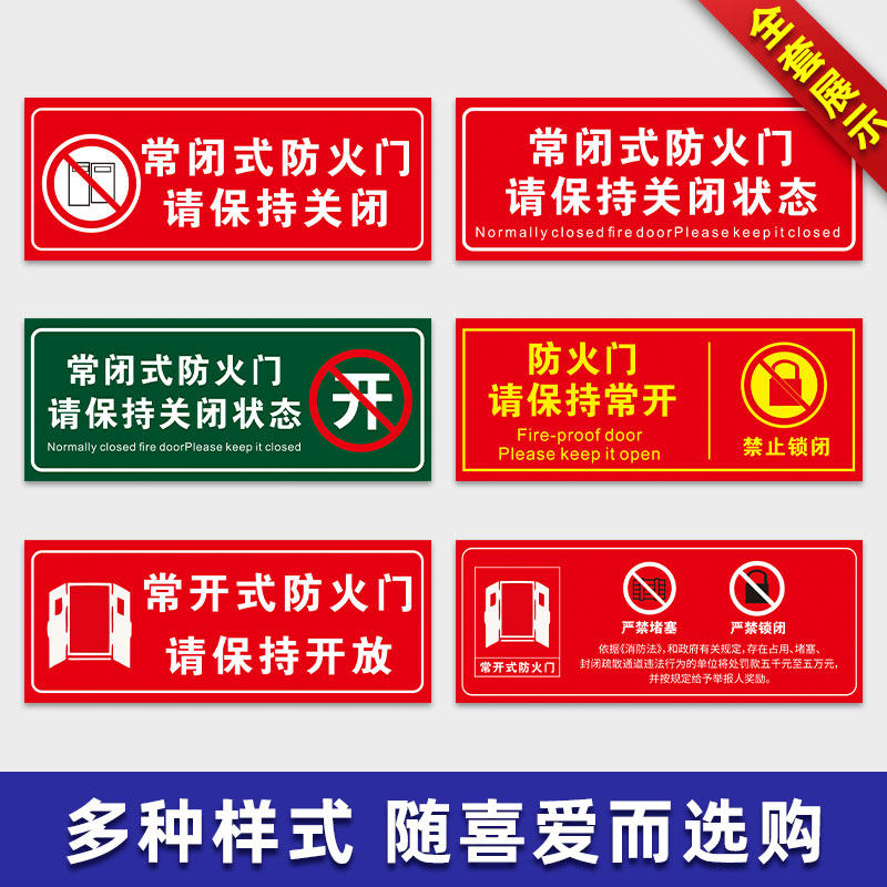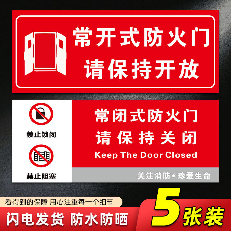 常闭式防火门请保持关闭状态常闭常开式防火门标识贴纸夜光标识指示牌防火卷帘下禁止堆放物品标志通道牌