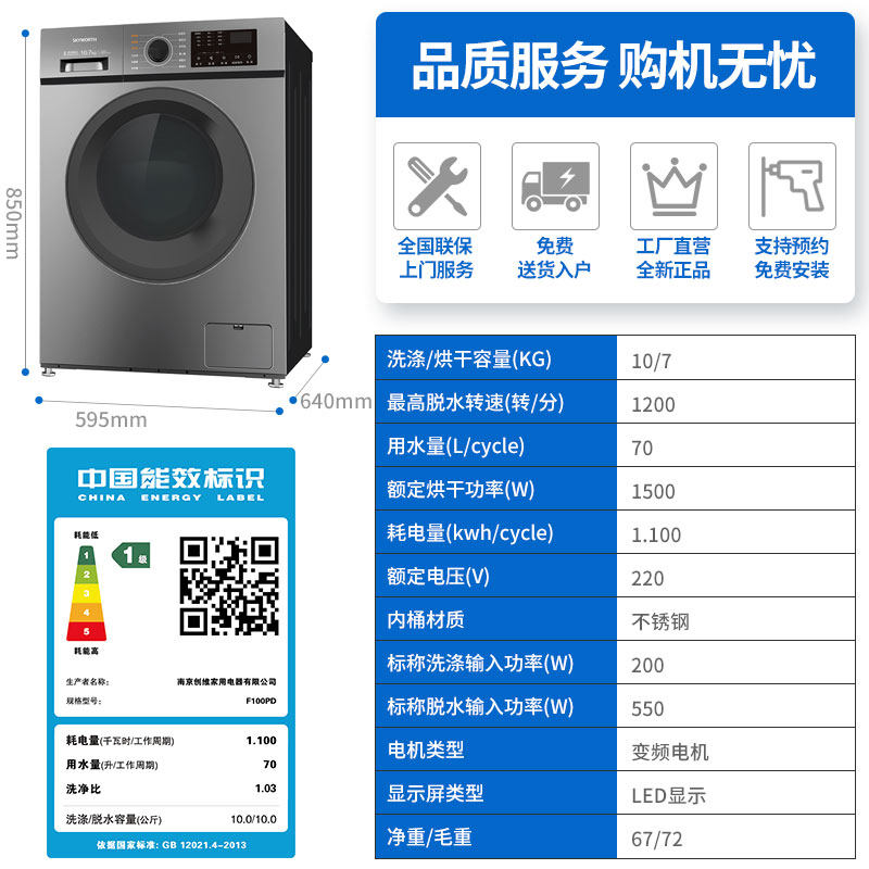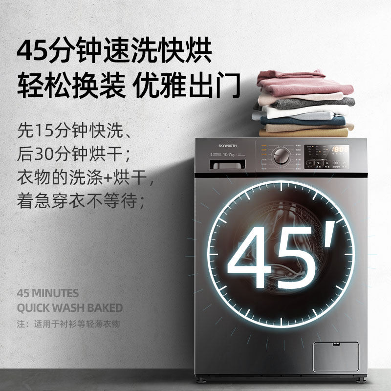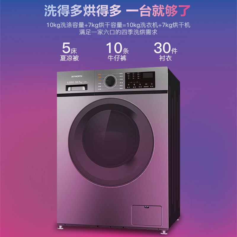 创维全自动滚筒洗衣机家用洗烘干一体变频静音高温除螨一级节能