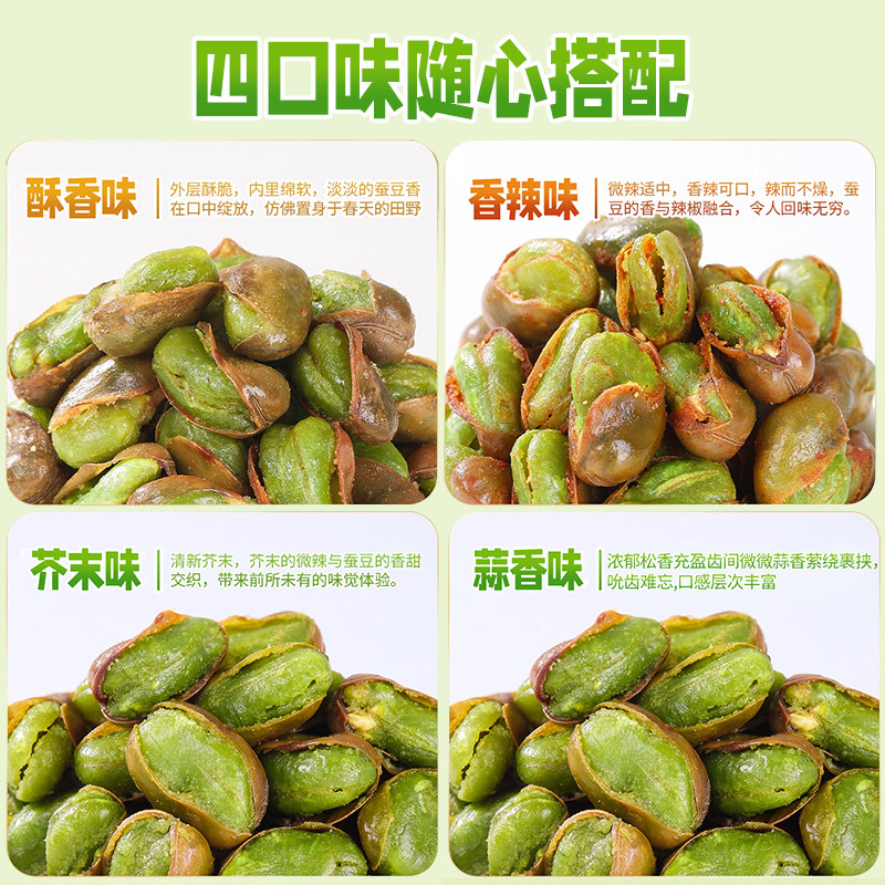 云南特产保山翡翠绿心带壳蚕豆香酥原味芥末香辣蒜香味零食下酒菜