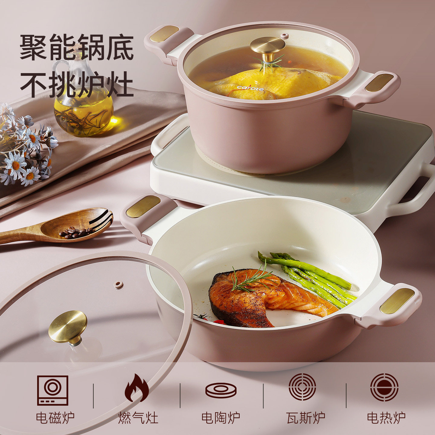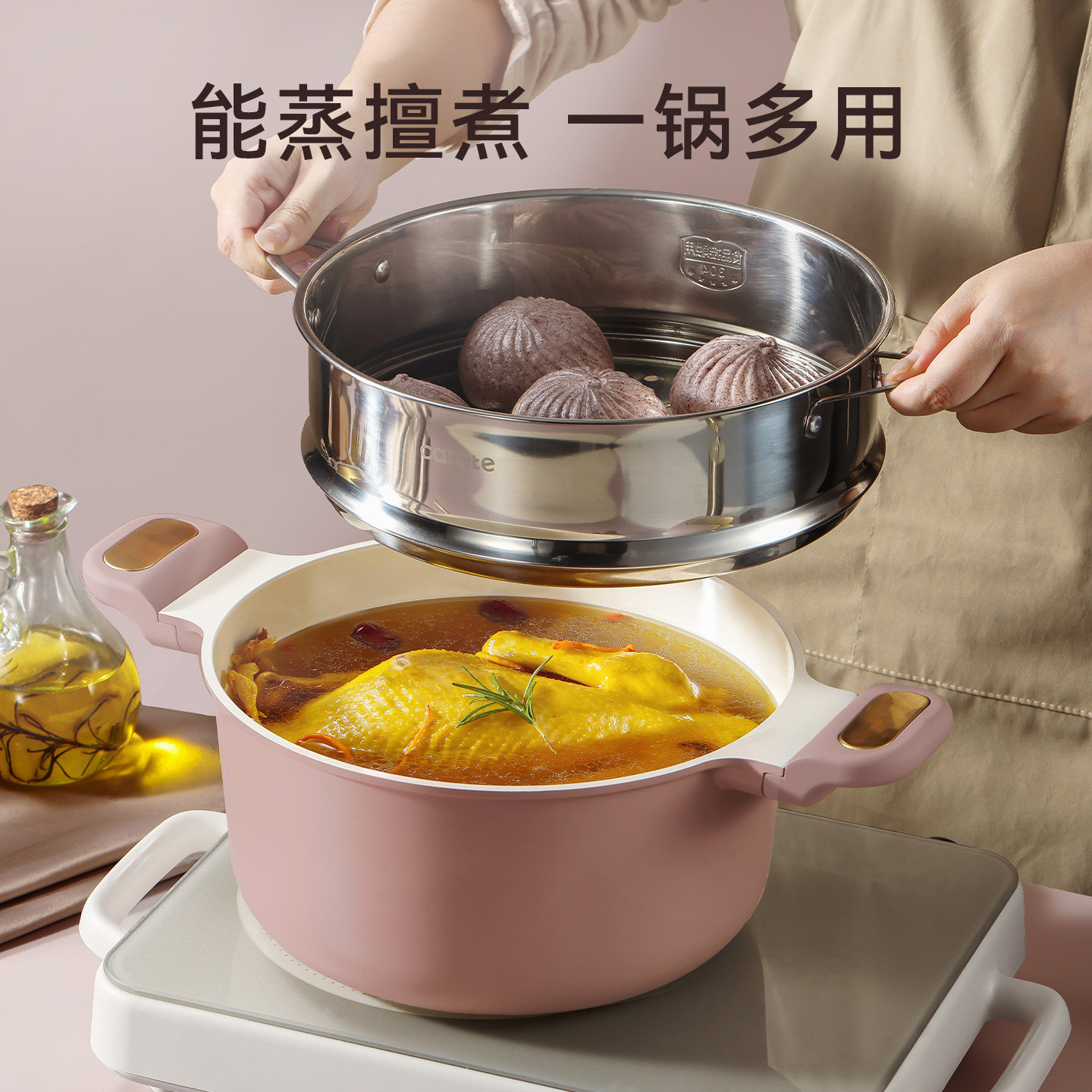 卡罗特蒸锅家用大容量钛陶瓷不粘汤锅双耳煮炖锅电磁炉燃气灶专用