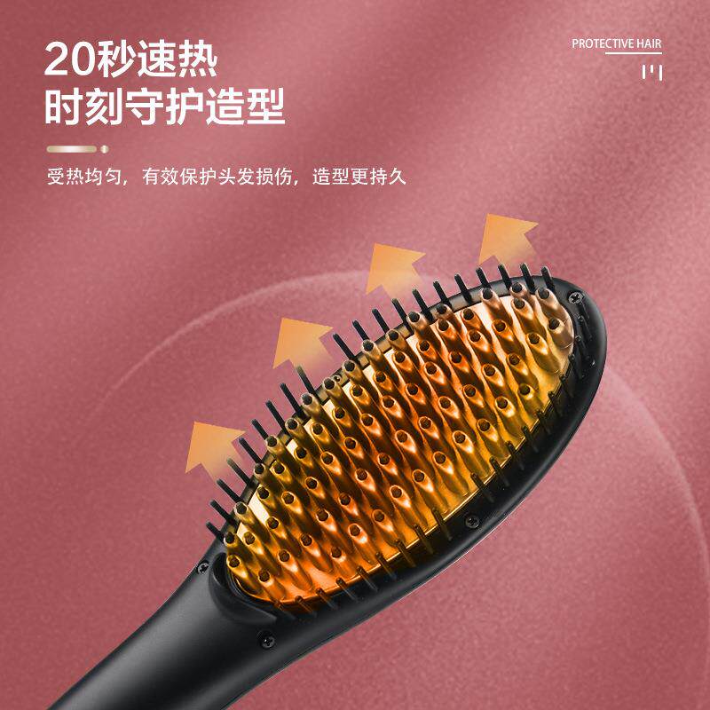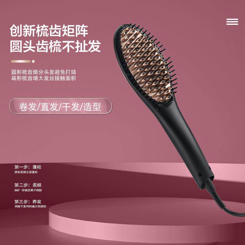 家用直发梳带转尾直发器电热梳负离子速热可调温不伤发便携卷发棒