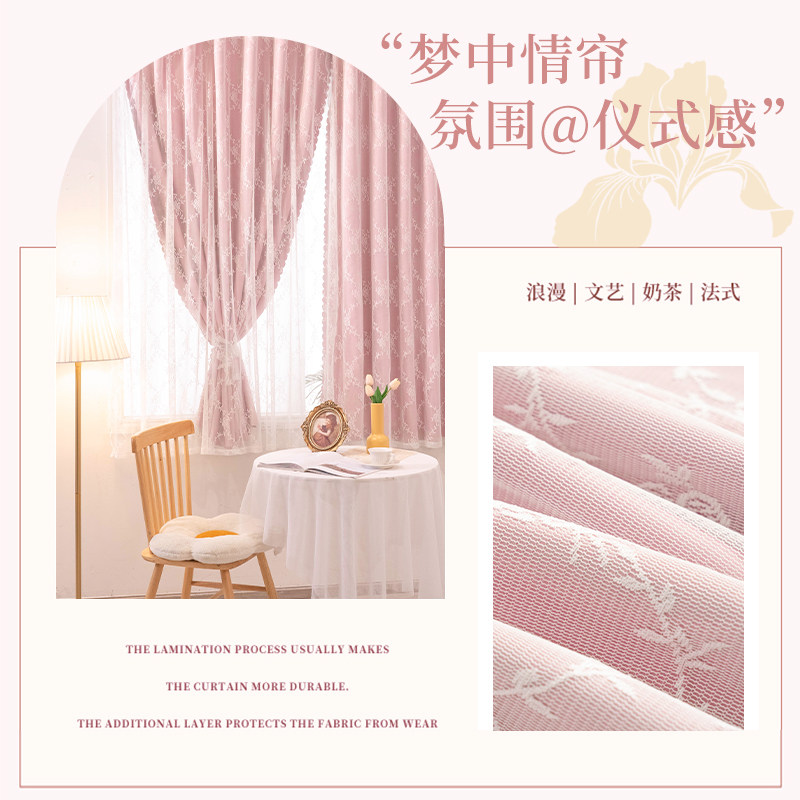 免打孔法式纱帘一体梦中情帘隔断帘简约魔术贴窗帘奶油风遮挡帘新