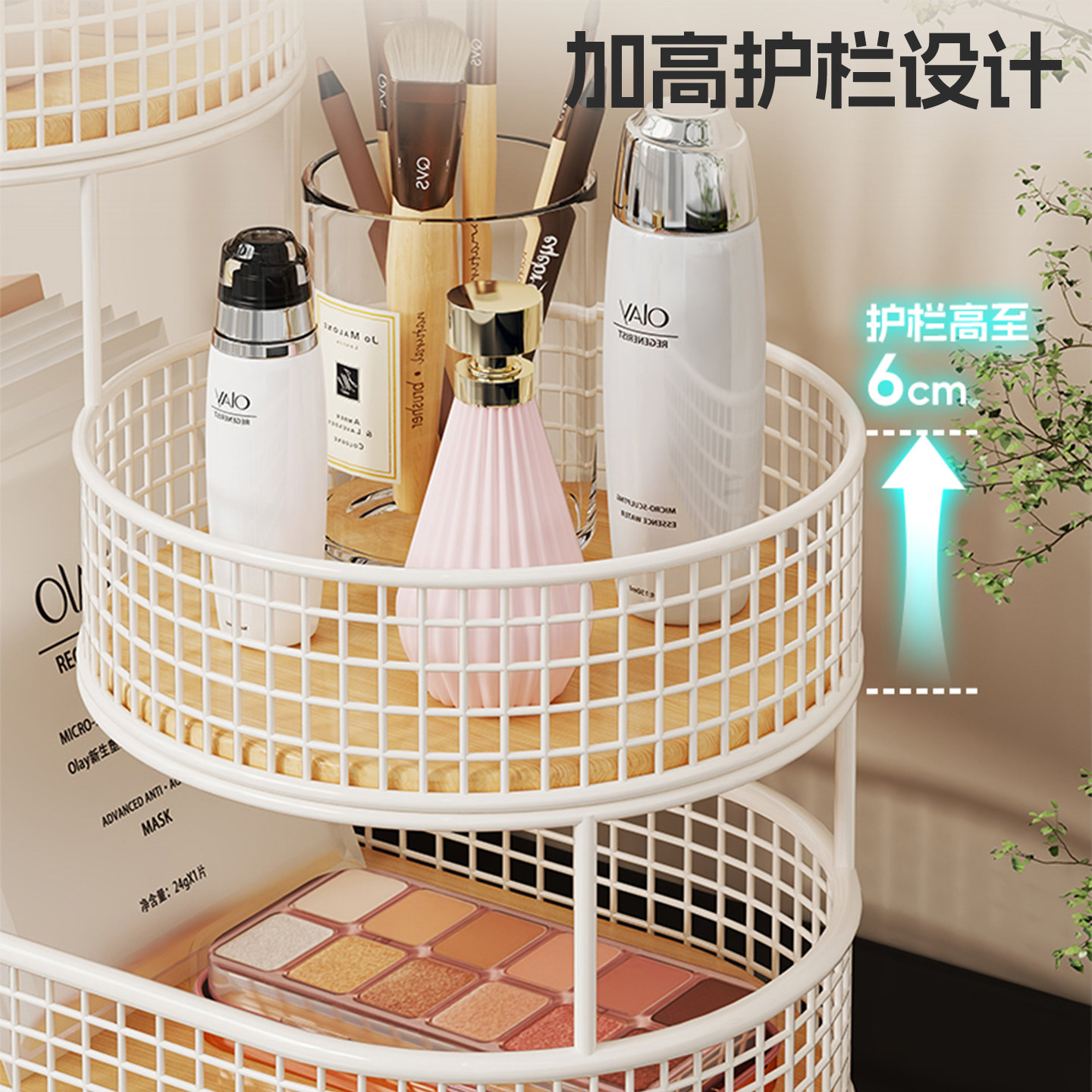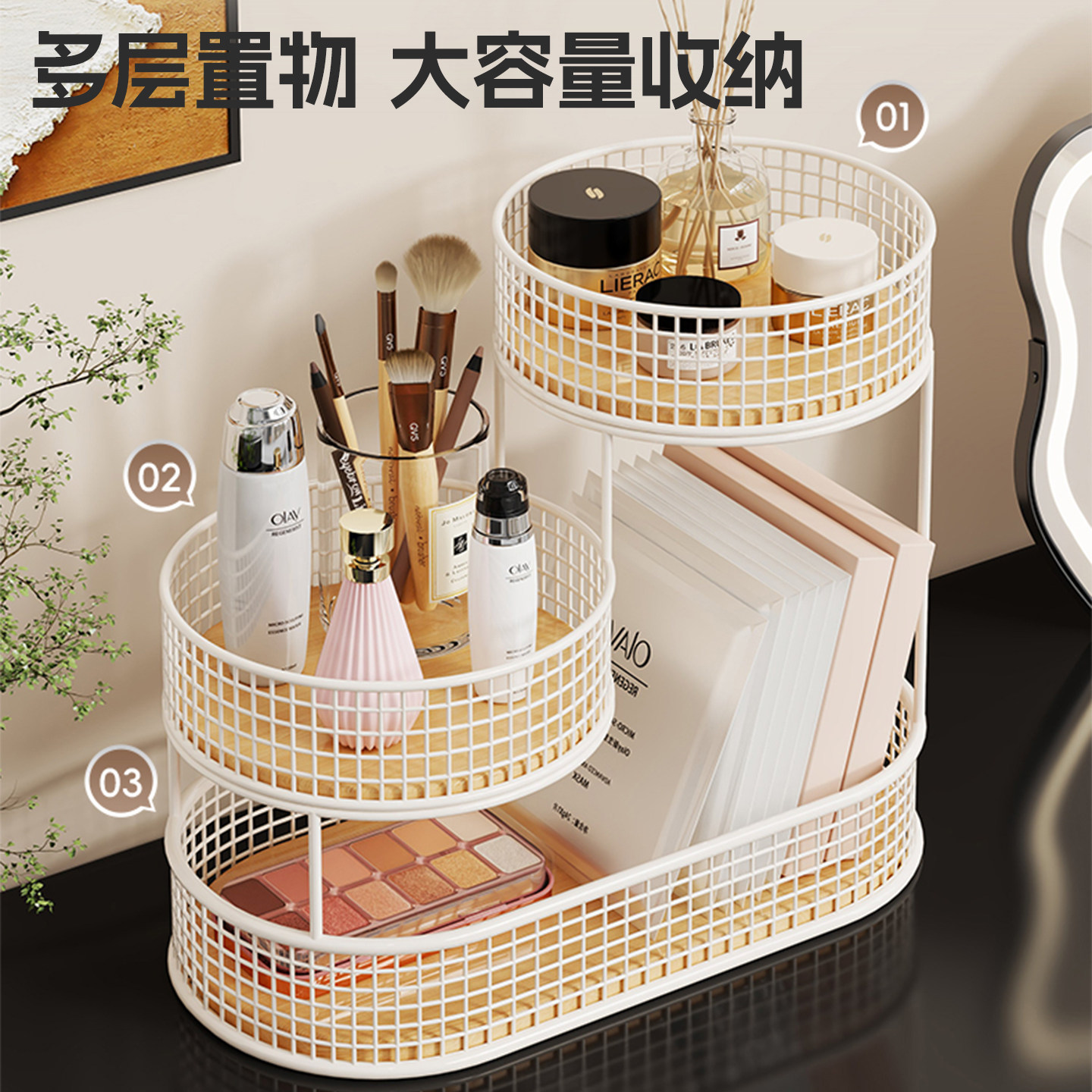 化妆品置物架收纳架桌面铁艺护肤品架梳妆台多层加高收纳盒温馨