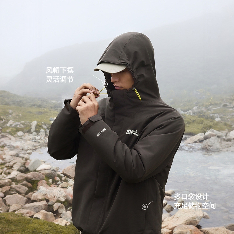 JackWolfskin狼爪25秋冬新款JOYFUL男款抓绒三合一冲锋衣A65466