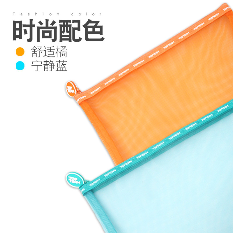 千千圈笔袋 网纱袋网格拉链袋a5文件袋铅笔袋麦思考简约初中生男小学生用女透明考试科目分类收纳袋便携考试