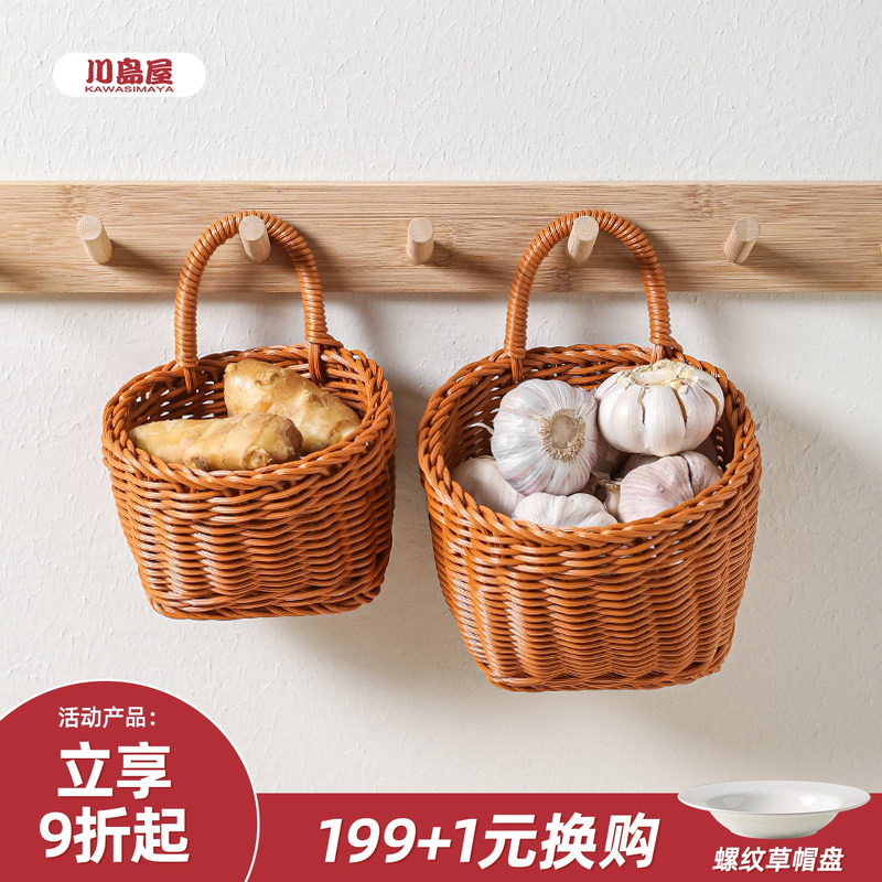 川岛屋姜蒜收纳筐厨房小挂篮墙上置物筐放葱生姜大蒜手工编织篮子