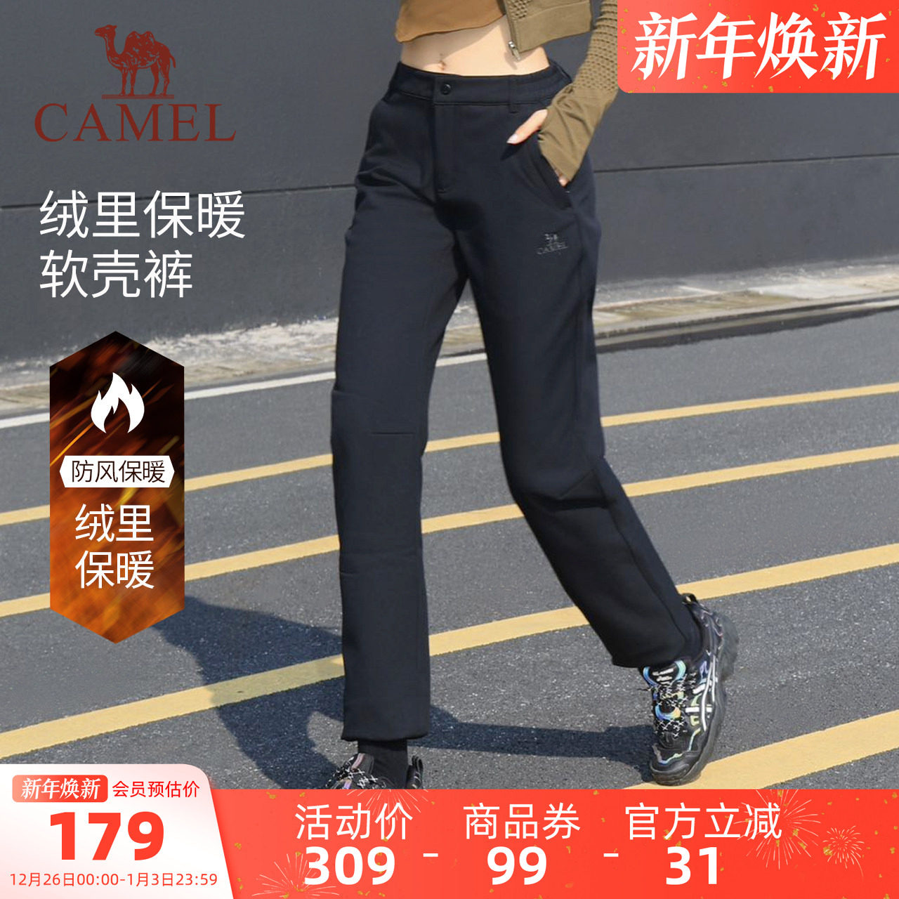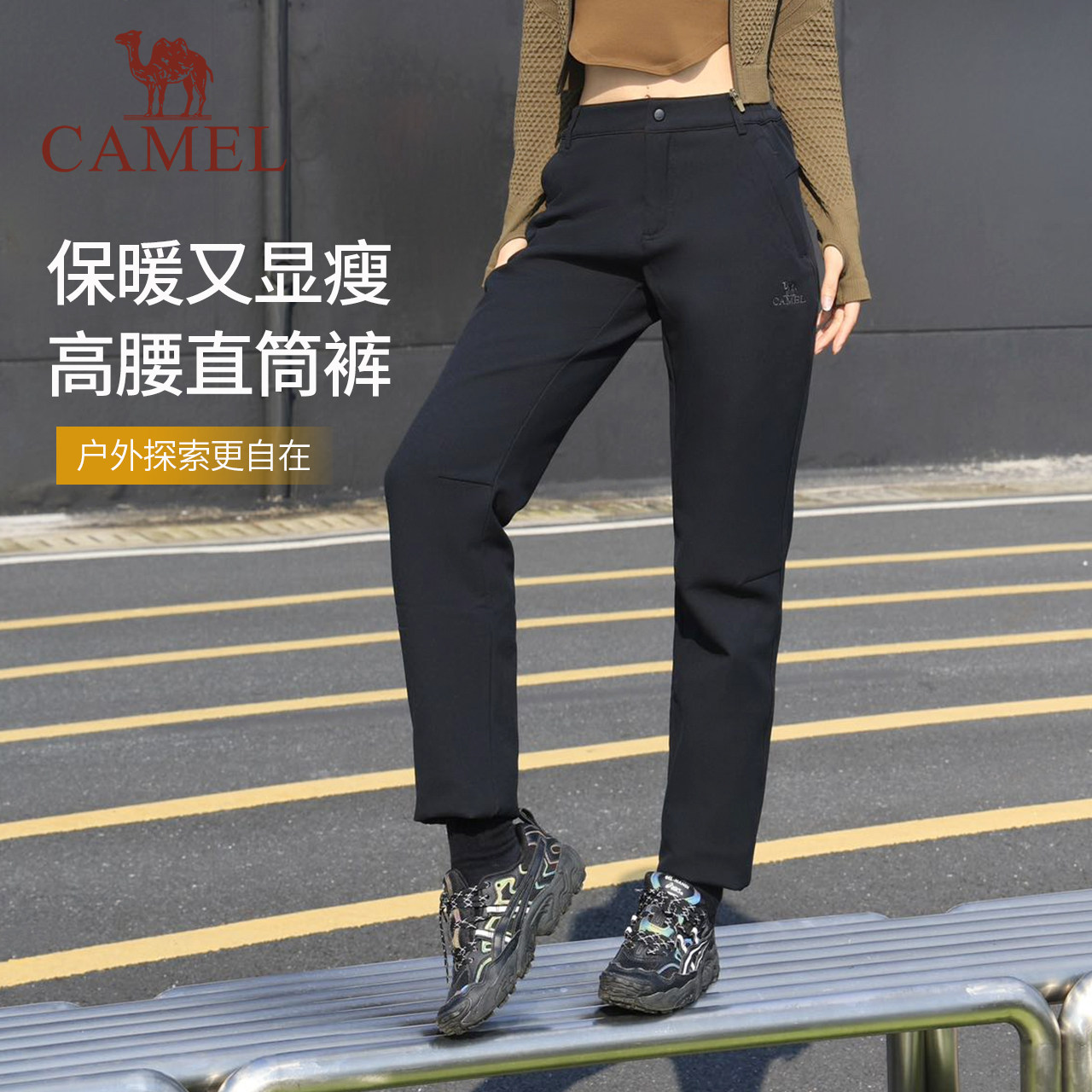 骆驼女装软壳裤加绒冬季高腰显瘦直筒裤长裤防风运动裤户外休闲裤