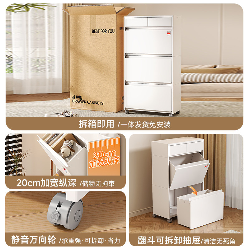 翻盖夹缝收纳柜厨房缝隙置物架卫生间多层储物柜客厅塑料零食柜子