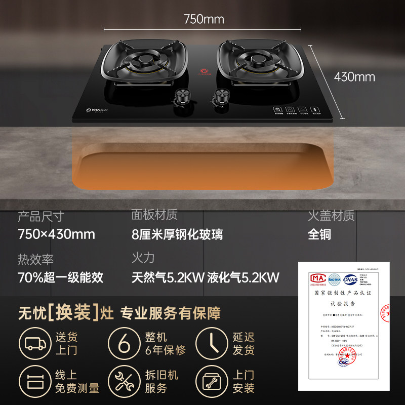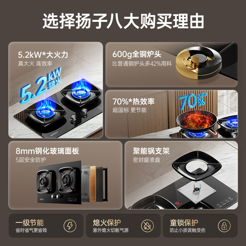 扬子天然气燃气灶具家用嵌入式液化气双灶煤气灶以旧换新节能炉灶