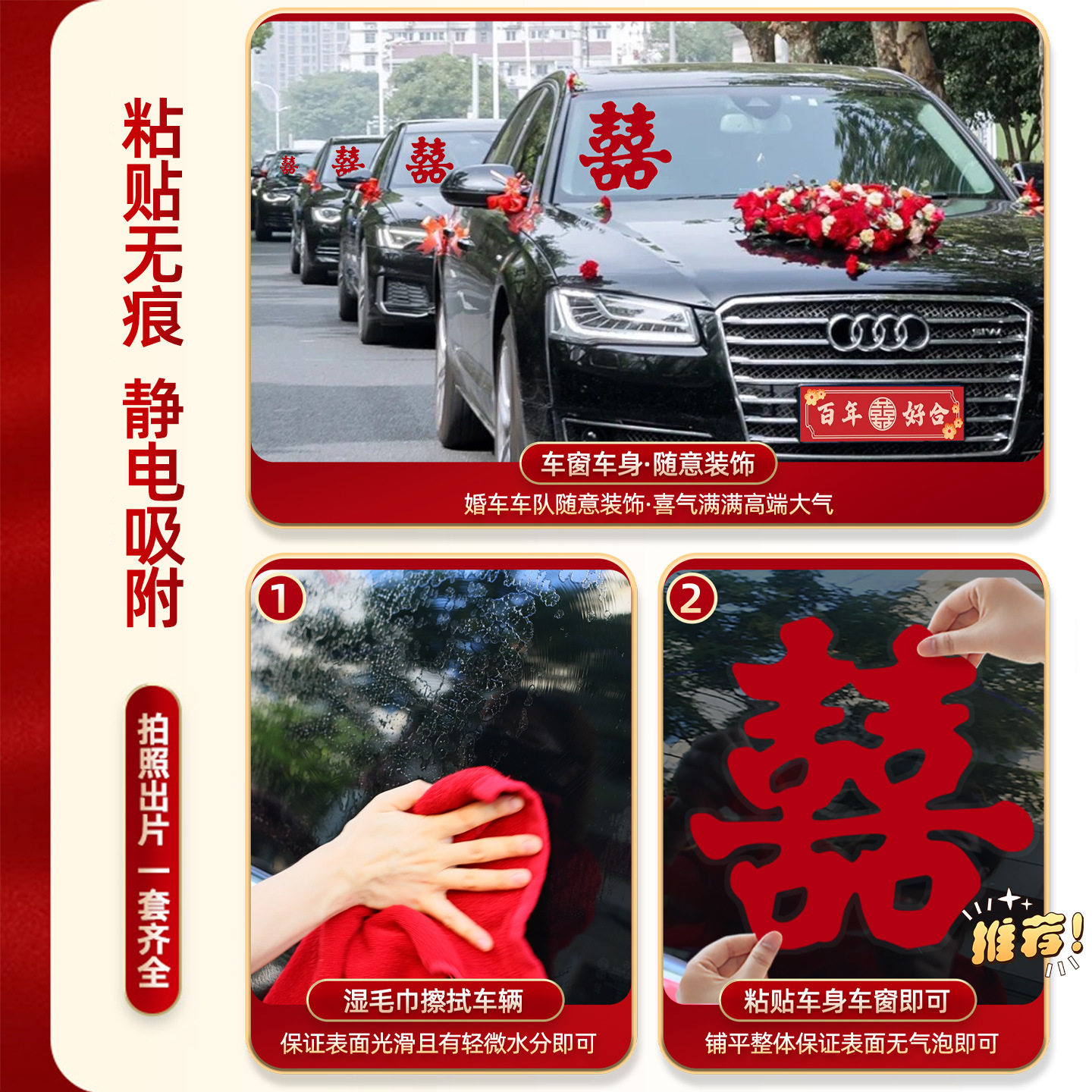 结婚专用婚车静电喜字贴迎亲车队窗户装饰玻璃贴车贴喜事用品大全
