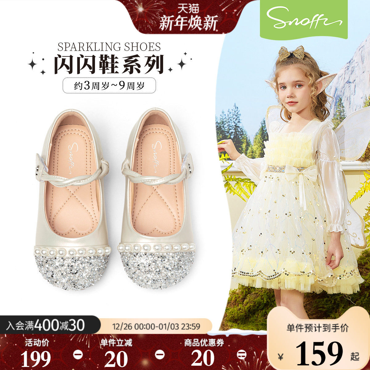 斯纳菲儿童水晶鞋女童小香风公主鞋2026年春秋新款女宝宝闪亮皮鞋