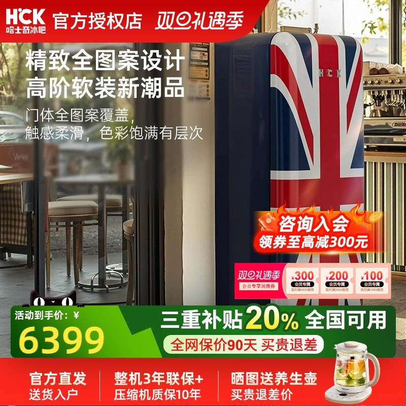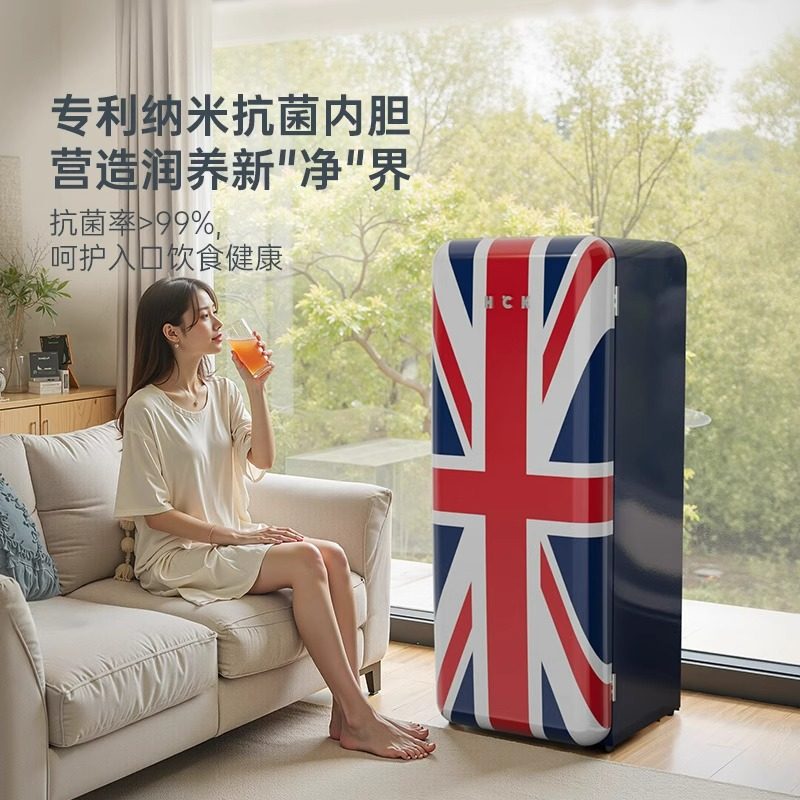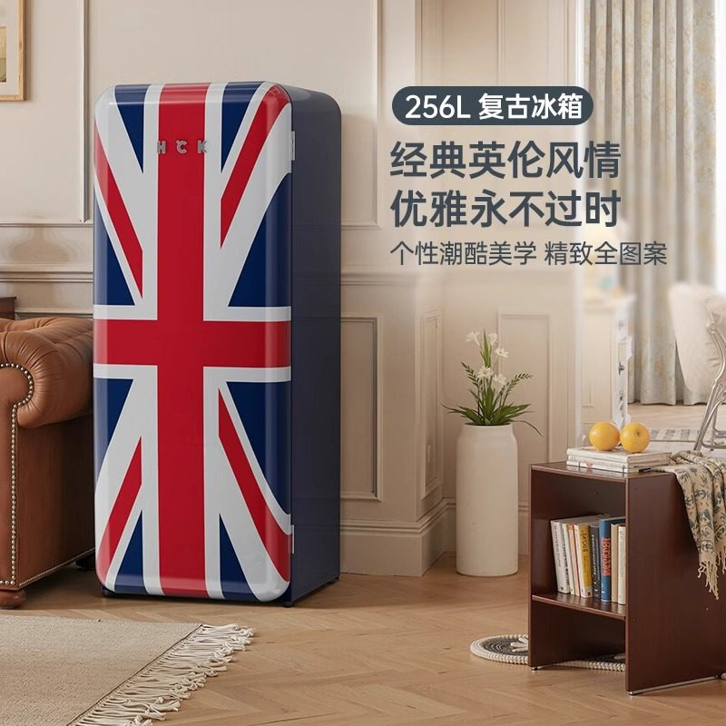 HCK哈士奇复古米字旗冰箱高颜值单门冷藏冷冻家用办公室冰柜256L