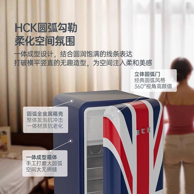 HCK哈士奇小吐司2.0复古冰箱一级能效迷你家用客厅办公室冷冻保鲜