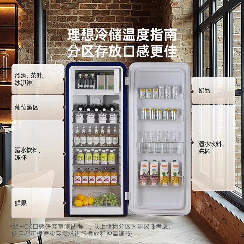 HCK哈士奇冻吐司复古冰箱全保鲜冷冻柜立式冰柜家用客厅风冷单门