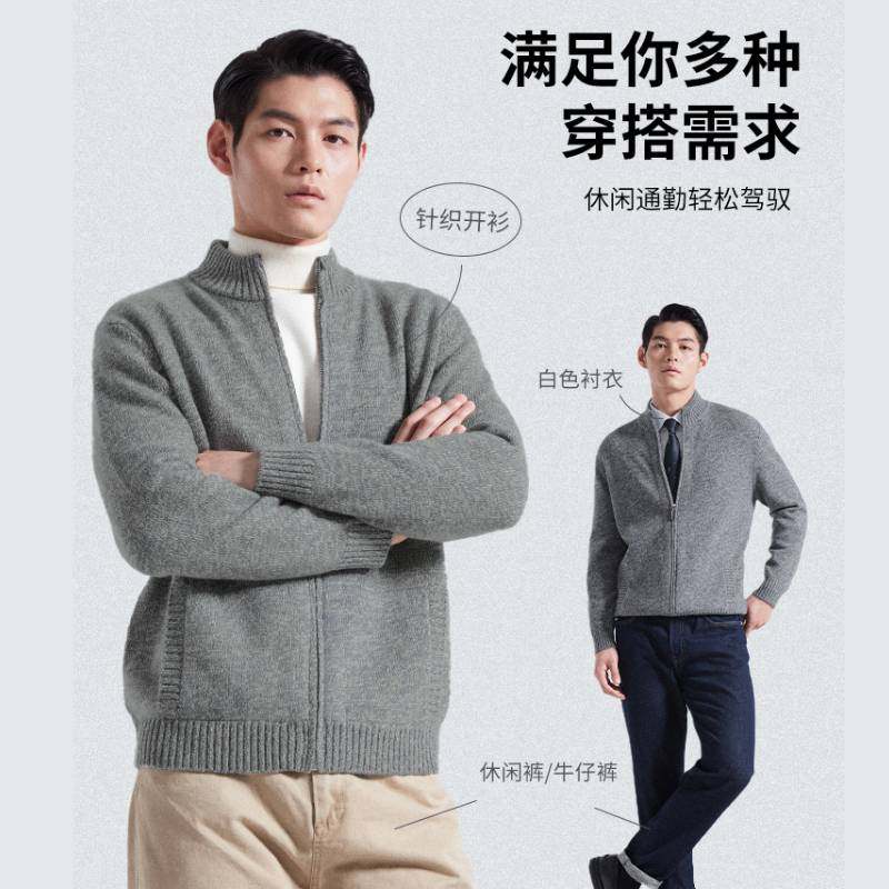 杉杉新款男士纯绵羊毛针织开衫秋冬保暖打底衫加厚毛衣可机洗外套