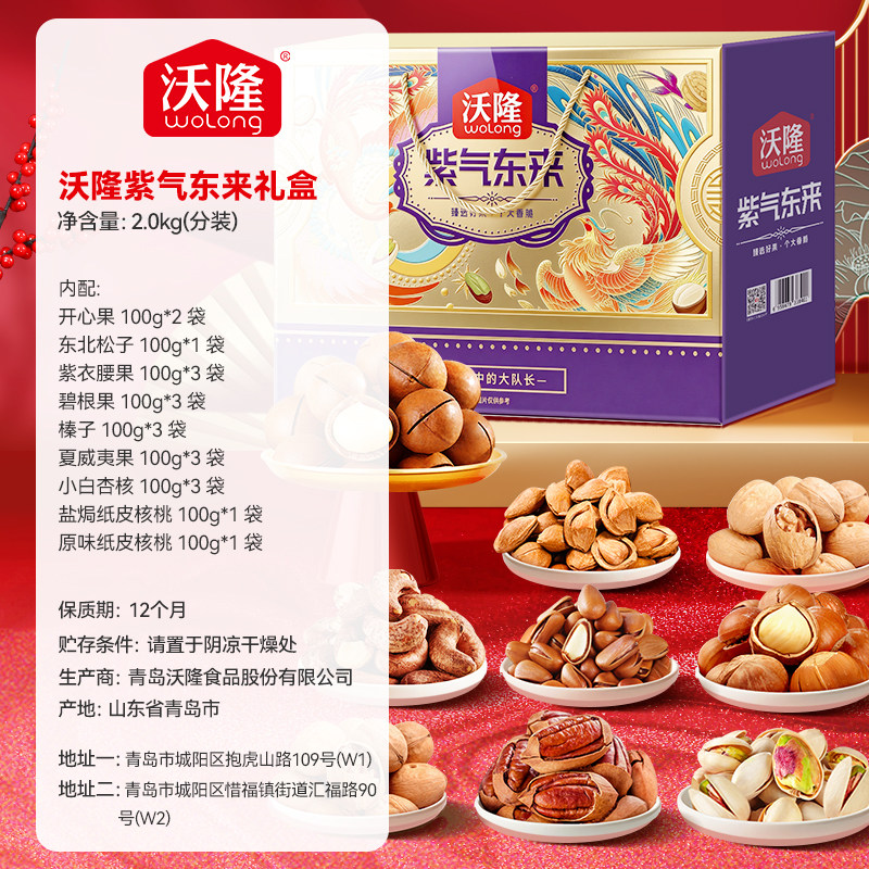 【k姐推荐】沃隆坚果礼盒紫气东来2kg节日送礼纯坚果健康高端礼盒