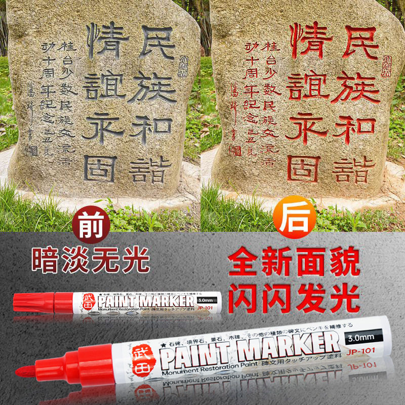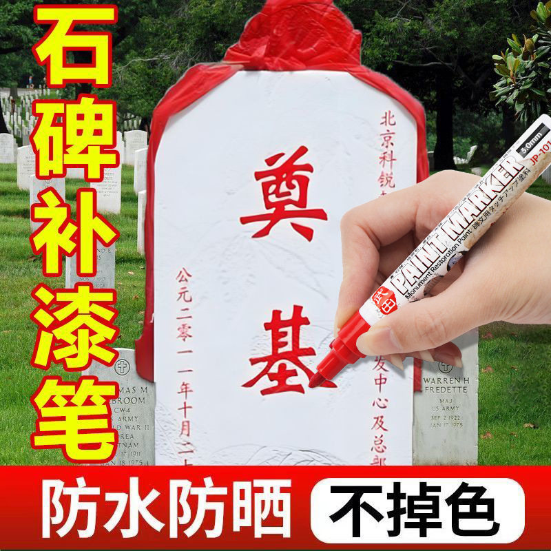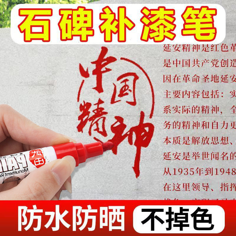 石碑油漆笔防水防油不掉色户外记号笔写字漆描碑文不褪色金属色红色油性笔补漆笔油性记号笔金属笔手绘书法