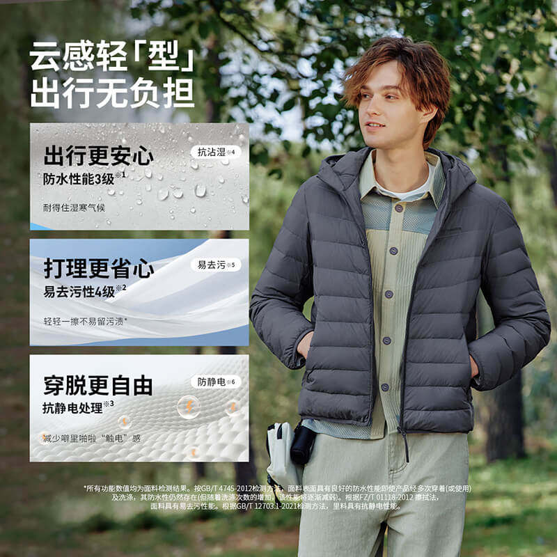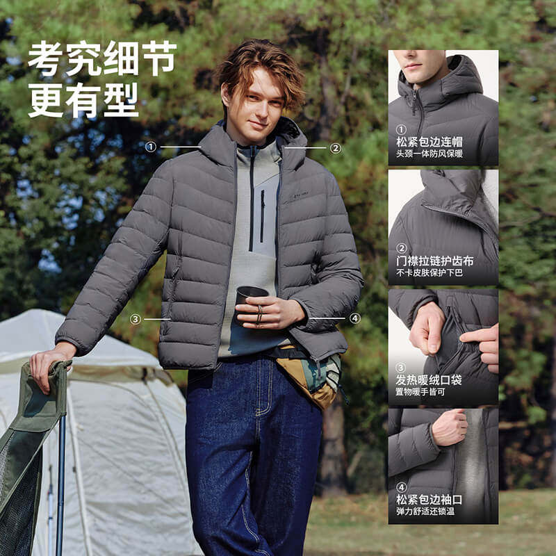 鸭鸭轻薄羽绒服男士2025年秋冬反季短款保暖休闲时尚连帽鸭绒外套