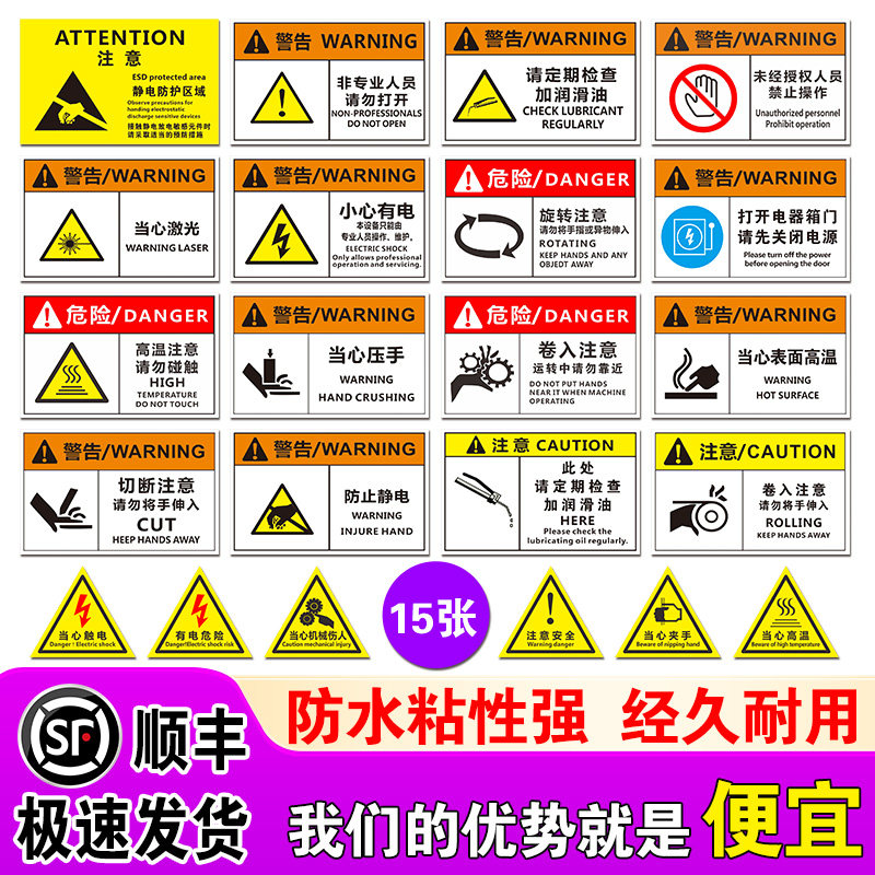 有电危险警示贴当心触电标识牌贴纸机械伤害设备安全请勿触摸标签