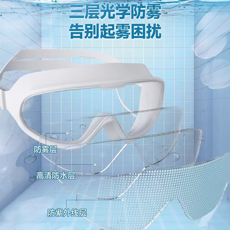 超清疏水防雾成人儿童男女通用游泳眼镜大框潜水泳帽耳塞一体装备