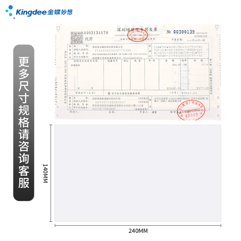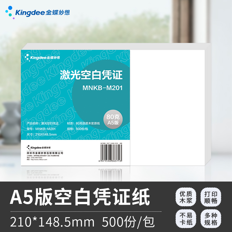 金蝶A5发票版101版210*120mm103K空白记账凭证打印纸用友航信软件